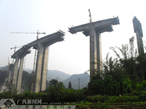 路桥建设者全力冲刺"广西第一高桥"合龙施工(图) |