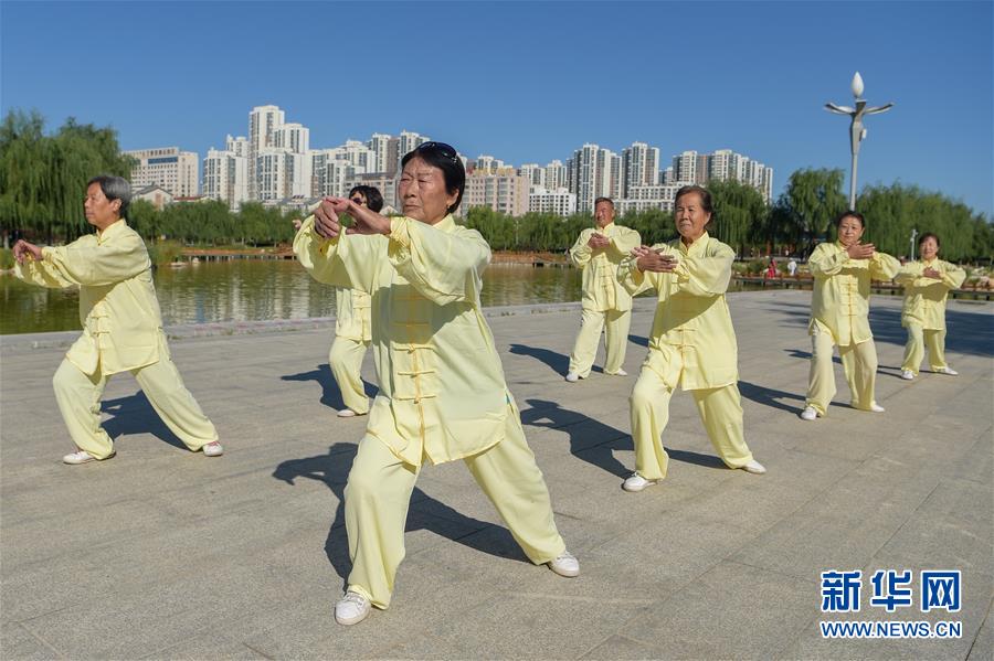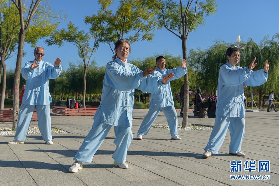 9月10日,太极拳爱好者在草原丝绸之路文化公园练习太极拳。 当日,内蒙古自治区呼和浩特市老年人体育协会开展太极拳交流活动,组织爱好者到草原丝绸之路文化公园练习太极拳,展示太极拳魅力。 新华社记者李志鹏摄