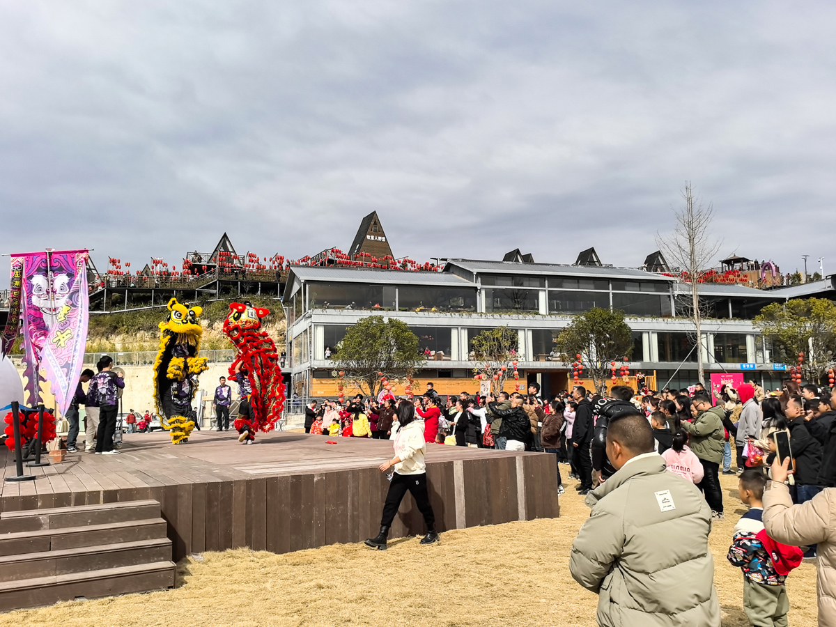 此外,云观天景区还推出了非遗漆扇体验活动,让游客们近距离感受传统文化的独特魅力。围炉煮茶则让游客们在忙碌的生活中找到片刻宁静与温馨,大家围坐在火炉旁,品着香茗,聊着家常,互送新春祝福,感受着温暖年味。舞狮表演更是将节日氛围推向了高潮,只见两只狮子在“云顶”之上翻腾跳跃、气势威武,赢得游客们的阵阵掌声和喝彩。